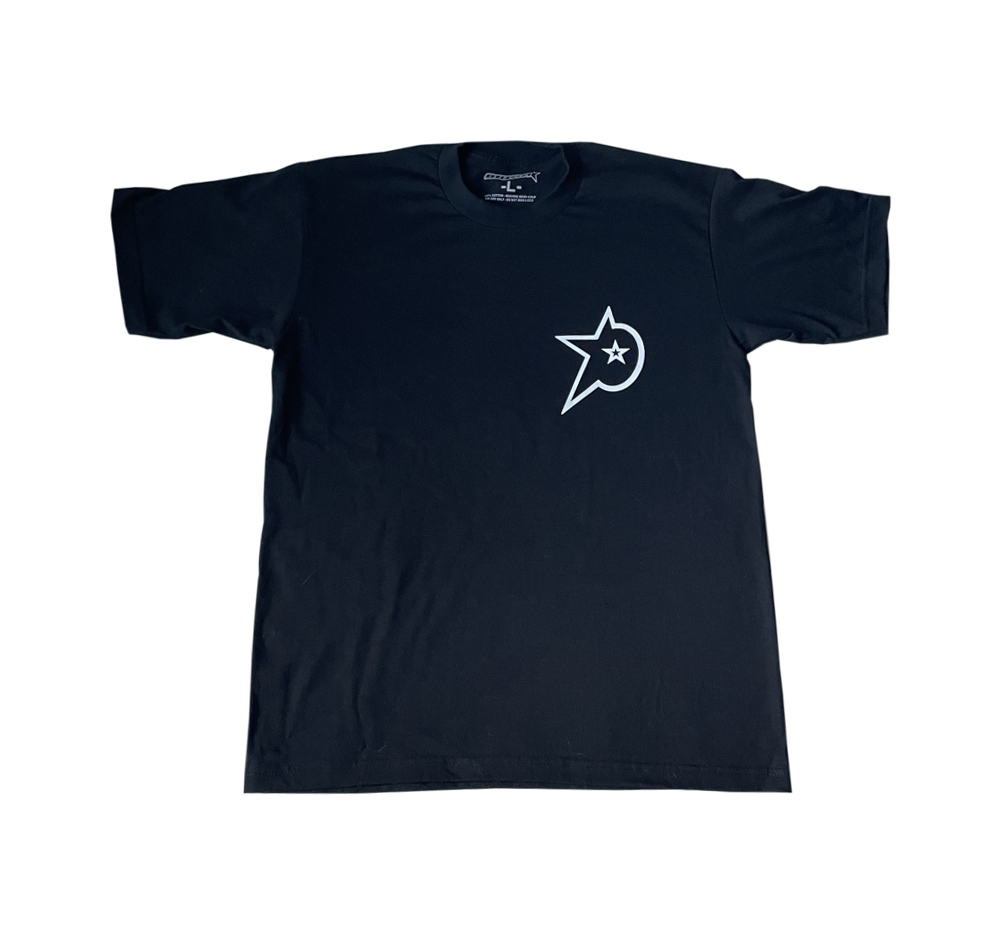 Orion WRLD Apparel's first tee drop which contains a DTG printing finish with a simple front and back design. Orion's tee is a shakawear black heavyweight garment with a weight of 7 oz